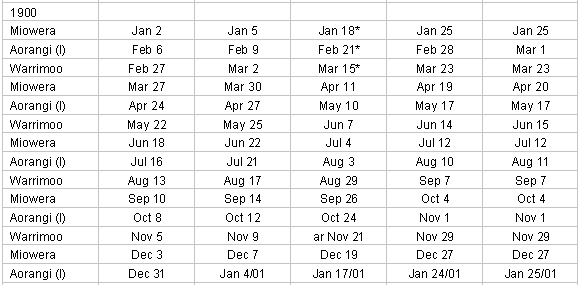 * An asterisk in the Suva column indicates that I have seen a report of a call at Fanning Island after Suva. The first northbound visit to Fanning Island was by the Moana on November 12, 1904.