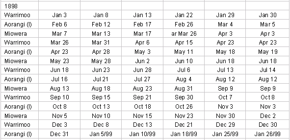 †† Miowera departed Sydney on January 25, 1896 but returned to port.